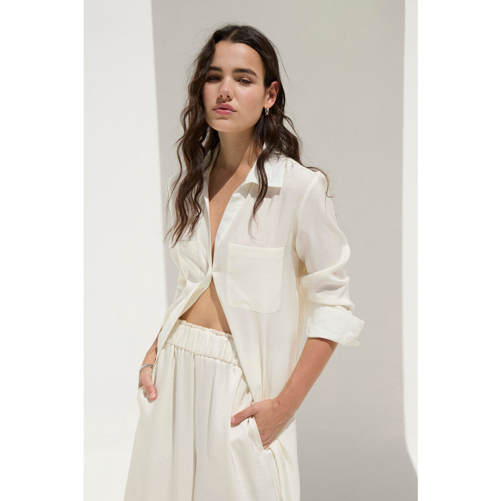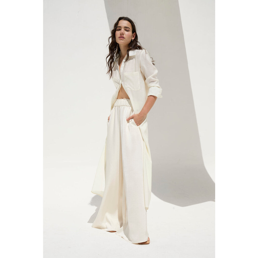 Satin pants with elasticized waist. Side pockets. Wide leg