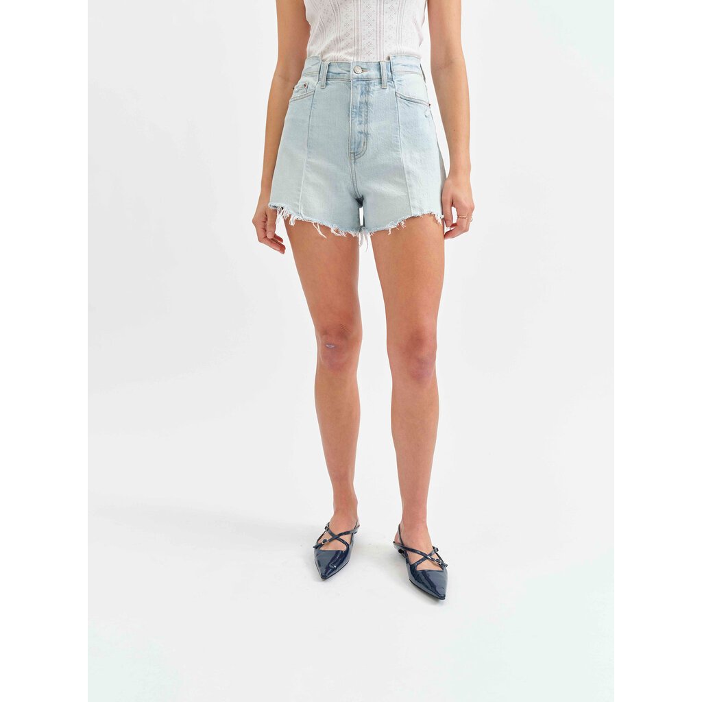 Turn heads in this high-rise a-line cutoff short, featuring scissor-cut hems against a light wash with vintage-inspired distressing. Constructed from our Tough Love Fabric, this short is mostly rigid but yields to your body in all the right ways.