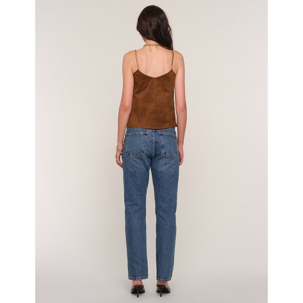 The perfect tank for autumn in the South! Faux suede slim fit tank with adjustable straps and v-neck silhouette. Length: 22" from high point of shoulder